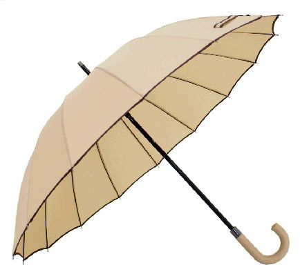 Chapéu-de-chuva manual com cabo de madeira.
