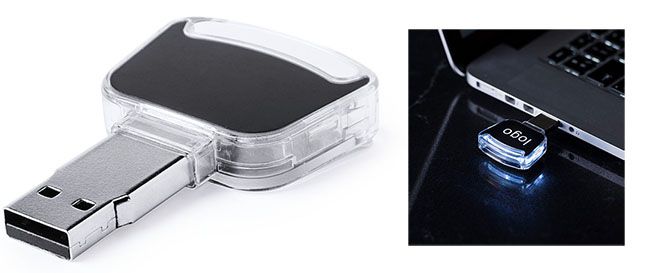 LED interior para iluminar o logotipo. Especial para gravação a laser. Medidas: 3,7 x 5,9 x 0,9 cm. Peso: 12 gr.