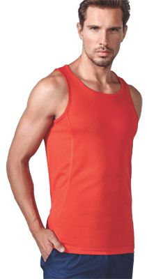 Camisola desportiva com cavas e decote debruado. Costas estilo natação e costuras laterais. Transpirável. Detalhe de relectores.