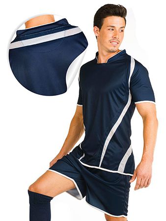 Conjunto desportivo de adulto: 2 camisolas + 1 calção. Tecido confortável, transpirável de fácil secagem. Inserções em contraste. Especial para sublimação. 100% poliéster, 130 grs/m2.