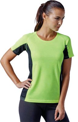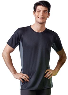 Estilo ranglan, (técnica de 2 tecidos de poliéster combinados), paineis laterais e interior da manga em tecido microperfurado. Gola com cobre, costuras de reforço no interior, adaptável ao corpo, modelo transpirável.