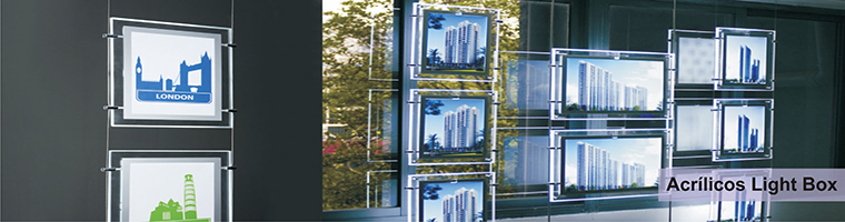 Expositores cuja imagem, colada em cima de um acrílico, pode ser iluminada. Podem ser estáticos ou rotativos, para ficarem apoiados no chão, em balcões ou para fixar na parede.