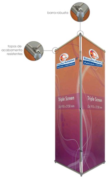 Expositores onde a imagem exposta é aplicada em barras no topo e base. Conhecidos por permitirem expor em 3 faces ao mesmo tempo. Suportam grandes áreas de imagem exposta.