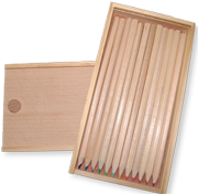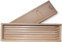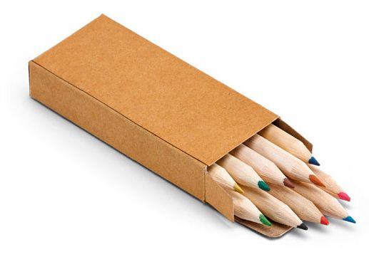 Caixa com 10 lápis de cor. Lápis em madeira e caixa de Cartão.