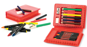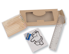 Conjunto c/ lápis de cor em madeira, lápis de cera, borracha e afia (14pcs) 13,5x9,5x2,9cm fechado.