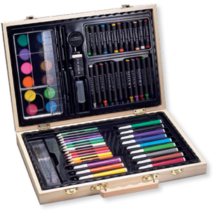 Caixa de pinturas madeira, 67pcs 32x22x4,5cm.