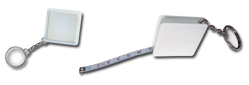 Porta-chaves em plástico com fita métrica metálica -> 1m.