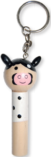 Porta-chaves em madeira com apito, expositor com 36 unidades sortidas.