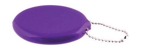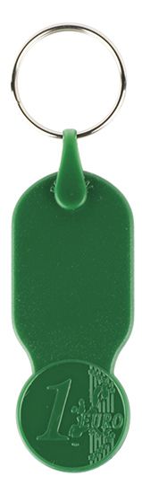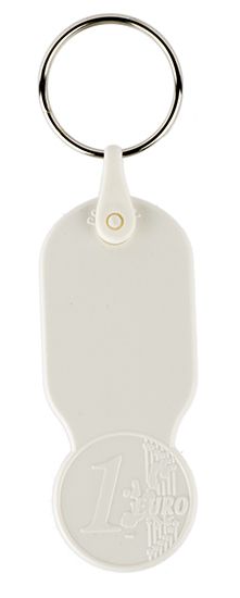 Porta-chaves de plástico com ficha 1,00€ para carrinho de compras. Medidas: 2,40 x 3,00cm. Peso: 5,5gr.