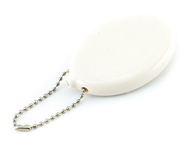 Porta-chaves oval com ficha € 1,00 para carrinho de compras. Peso: 15,99gr. Em Plástico e Metal
