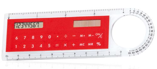 Régua de 10cm/4" com calculadora solar e lupa incluída.