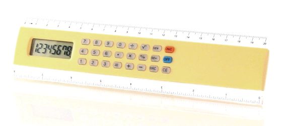 Régua de 20cm com calculadora, pilha incluída.