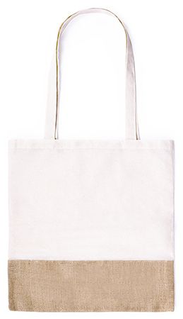 Saco ecológico em materiais naturais (juta e algodão) com 245gr/m². Alças com 70cm até 8kg em peso. Medidas: 37x41cm. Peso: 70gr.