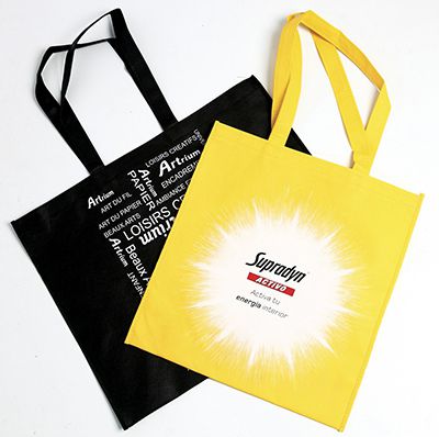 Saco resistente em non-woven de 80g/m2, numa gama de cores vivas. Com alças curtas de 35 cm reforçadas e acabamento termo selado. Até 5kg de peso.