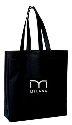 Saco em non-woven laminado de acabamento metálico. Disponível em 4 cores. Com alças de 42cm reforçadas. Acabamento termo-selado. Resiste até 7kg de peso.
