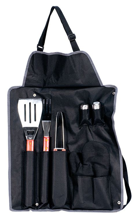 Conjunto avental de barbecue com 7 peças.