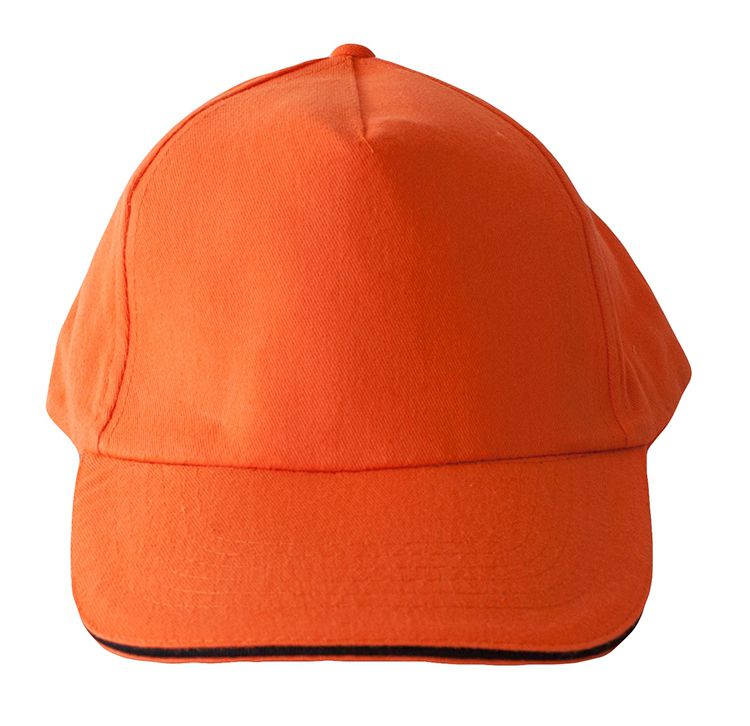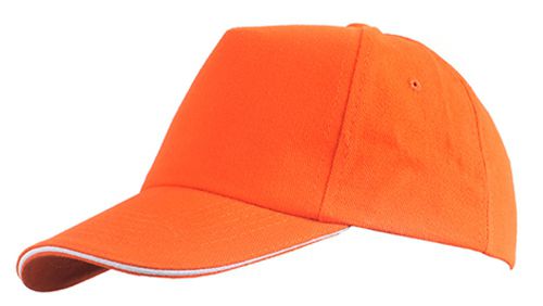 Boné de adulto com pala sanduíche 5 painéis e fecho em velcro. Algodão. Peso: 80gr.