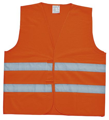 Colete refletor com bolsa homologado CE EN 471, poliéster com bolsa. Peso: 135gr.