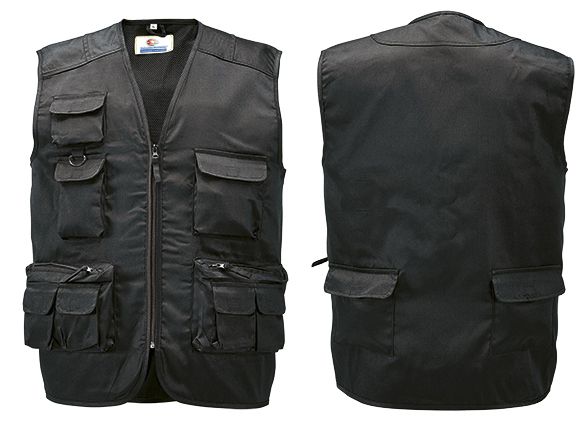 Colete multi-bolsos com fecho em nylon. Poliéster 65%, Algodão 35%. Peso: 440gr.